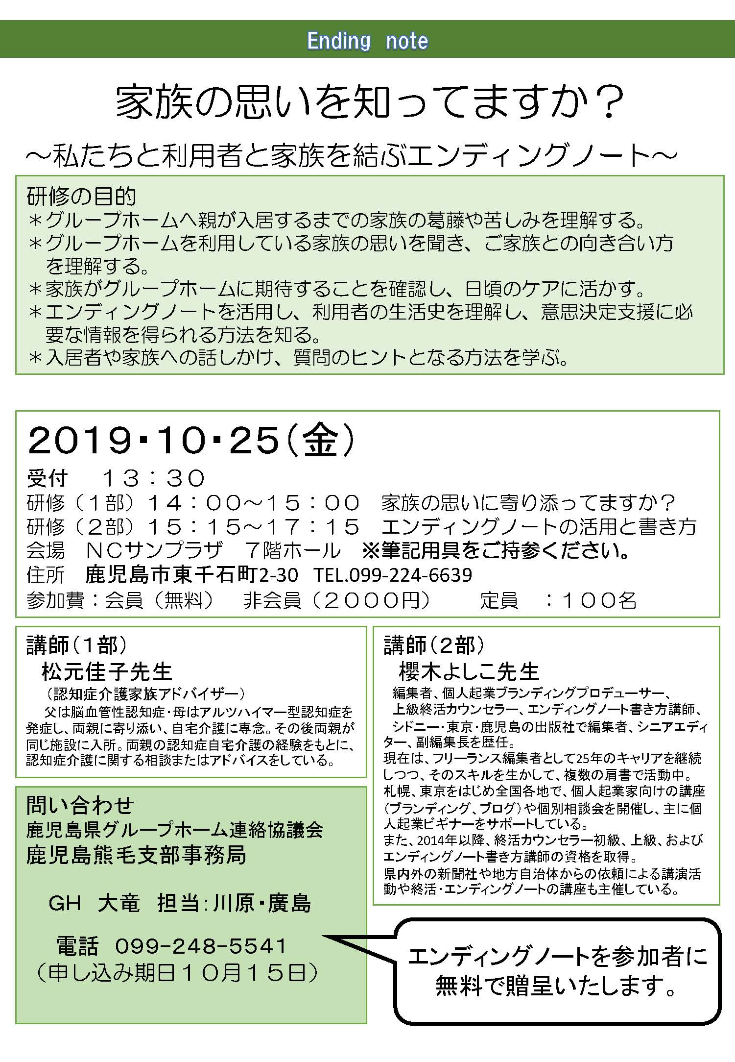 10/25 研修「エンディングノート」のご案内
